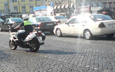 Foi o que sucedeu ontem, dia 22 de Maio. Telefonei para a esquadra da PSP de Miraflores a participar estacionamentos em cima do passeio, e em cima de passadeiras na R.Dr.Alfredo da Costa - pelos visto não fui o único, pois disseram-me logo que já mais alguém tinha participado. Por acaso estava na varanda, quando vi o carro-patrulha chegar. Vi sairem 4 agentes da viatura, e pensei que iriam autuar os veículos em transgressão. E assim o fizeram, a dois automóveis que se encontravam em cima do passeio (um terceiro que estava também aí estacionado, foi imediatamente removido pela dona, que assim que viu a viatura da PSP a estacionar, e se apressou em o retirar).