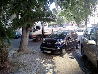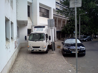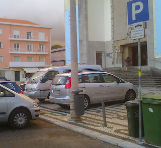 Reparem que nas últimas três fotos tiradas hoje mesmo, o "profissional" dos CTT estacionou em cima do passeio, quando tinha PRATICAMENTE TODOS os lugares da rua vazios!